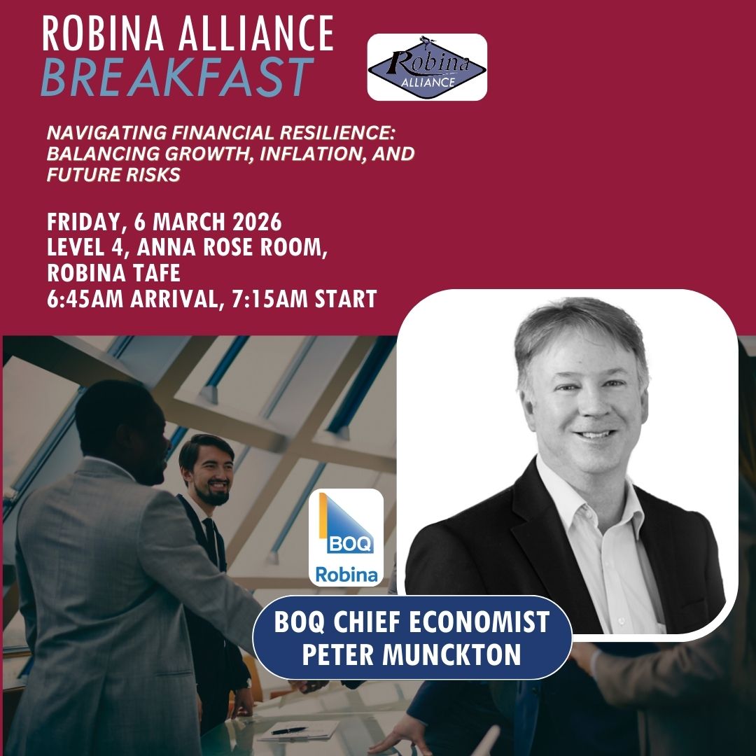 Robina Community - Join us for the first Robina Alliance Breakfast in 2026 on Friday, 6th March, where we'll be joined by guest speaker Peter Munckton, Chief Economist at Bank of Queensland.